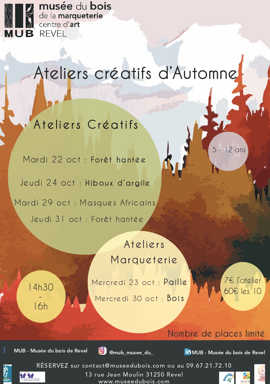 À l’occasion des vacances d’automne, le MUB – Musée du bois de Revel vous propose une série d’ateliers créatifs à destination des enfants de 5 à 12 ans. Vous pouvez télécharger directement le programme des ateliers en cliquant ICI.
