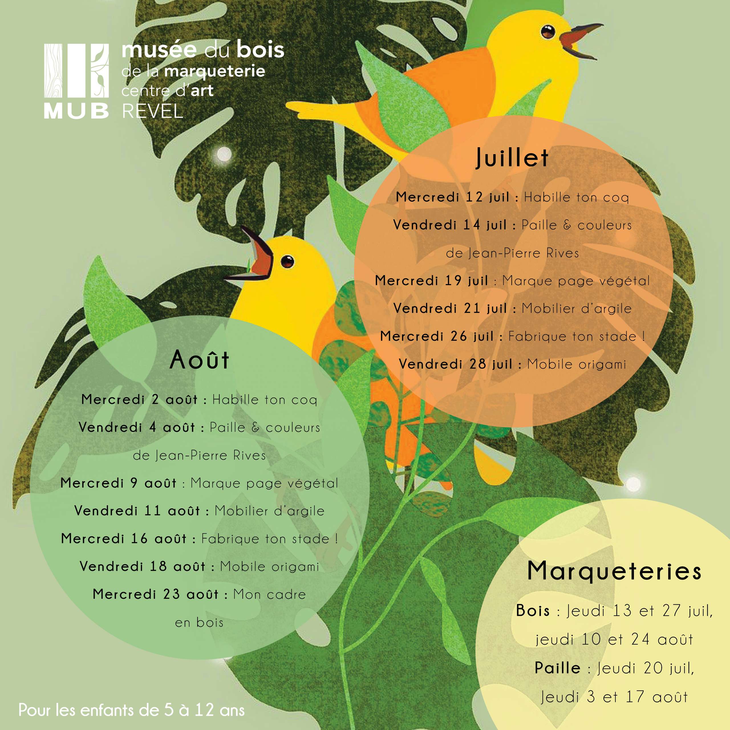 Pour les vacances d’été, le MUB – Musée du bois de Revel vous propose une série d’ateliers créatifs à destination des enfants de 5 à 12 ans. Vous pouvez télécharger directement le programme des ateliers en cliquant ICI.